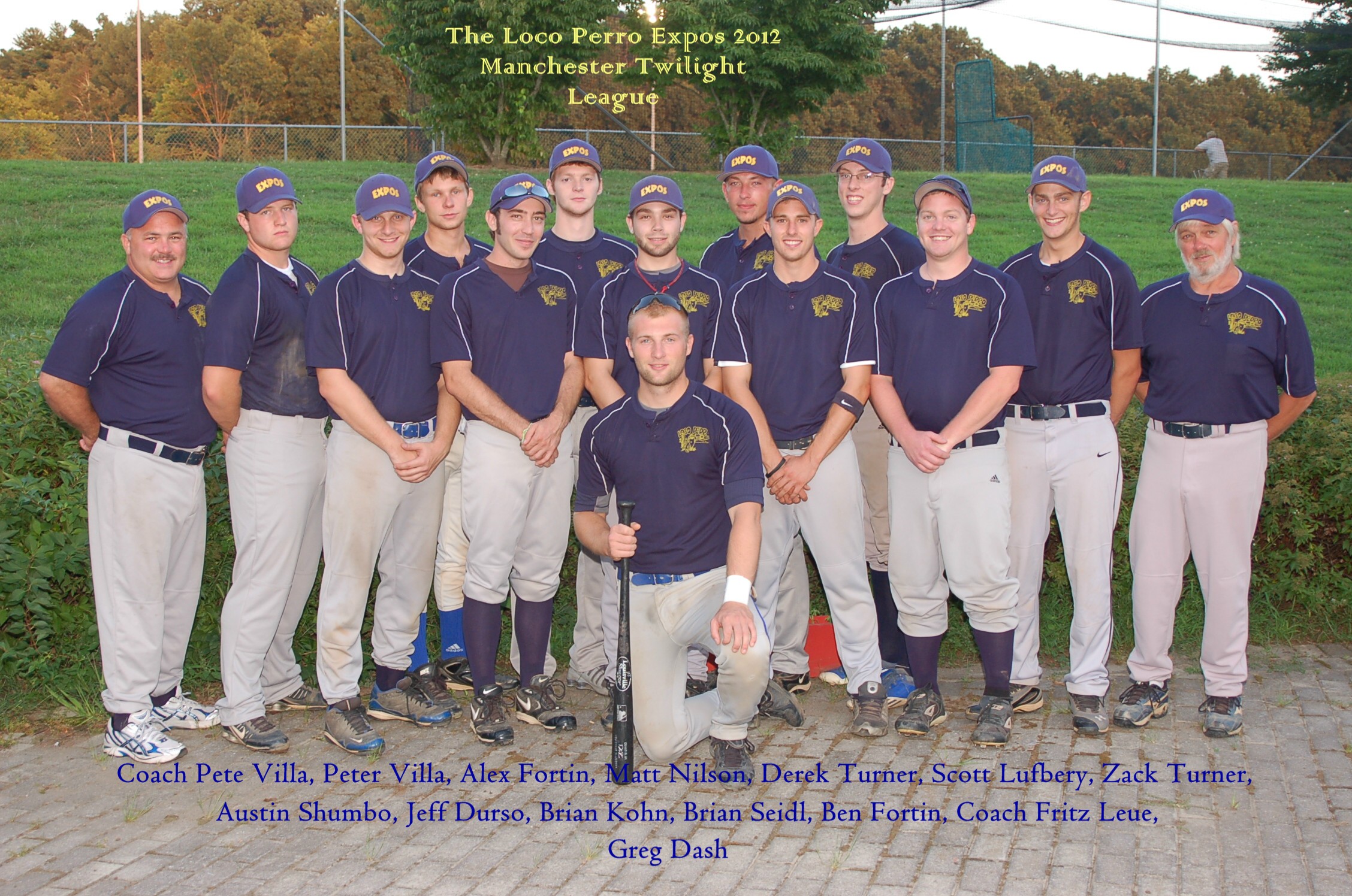 The Loco Perro Expos joined the Manchester Twilight League in 2011 as the Tri-County Expos with Bill Girardi at the helm. In 2012, Peter Villa Jr. and Fritz Leue took over the managerial duties and Loco Perro, a Mexican restaurant in East Hampton became the team’s title sponsor. That year, the Expos finished the regular season with a 7-12-2 record and captured the seventh seed in the playoffs. They won three games in the loser’s bracket, knocking off the defending champion Bristol Knights, the Glastonbury Pirates and Willimantic Ridges before losing to the eventual champion, Elmer’s by mercy rule in the semi-finals. In 2013, the Expos went 9-13-2 and earned the eighth seed in the newly expanded 10 team league and once again they went on a run in the tournament. The Expos eliminated the Knights, Rivals Indians and East Hartford Angels before a rematch with Elmer’s, but for the second straight year, Elmer’s ended the Expos run. In 2014, Villa retired from coaching and Leue left the team, handing it over to the “kids.” Brian Kohn and Zack Turner, along with the help of Brian Timmes, gained control and continue to coach the team in 2015. In 2014 the Expos finished the season at 8-18, but are looking forward to a strong season in 2015. The Expos currently play home games at West Road in Marlborough and frequent Loco Perro postgame.